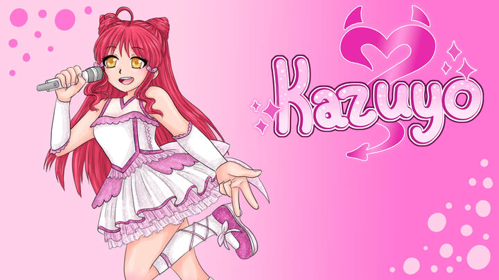 Kazuyo is a devilishly cute indie idol! She a Vtuber and is the star of her own WEBTOON series called Devilish! Kazuyo sings cover songs and performs live at idol festivals and in music videos! She’s striving to reach the next milestone of her idol carrier! Will you support her? If so, please be sure to cheer with your penlight set to PINK!